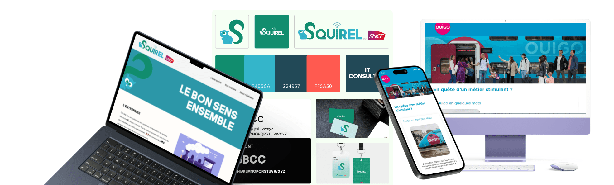 During my second-year internship, I joined Squirel, a SNCF subsidiary and IT service of Ouigo focused on Information Technology such as cyber security, websites or infrastructures. I worked with product owner, developers, or even the finance service as a UI/UX design intern, contributing to redesign websites or prototyping new ones, organise user tests and audit services.
